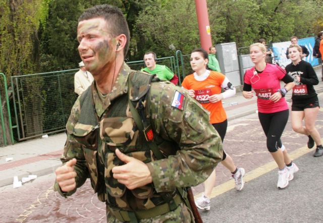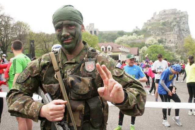 Na štart 65. ročníka národného behu Devín - Bratislava sa v nedeľu 15. apríla už tradične postavili aj vojaci v poľných uniformách. "Samozrejme, samopaly alebo odstreľovacie pušky Dragunov vyfasovali moji vojaci bez uzáverov. V každom prípade, som na svojich 13 borcov hrdý," povedal veliteľ Čestnej stráže prezidenta SR plukovník Miroslav Ištván.