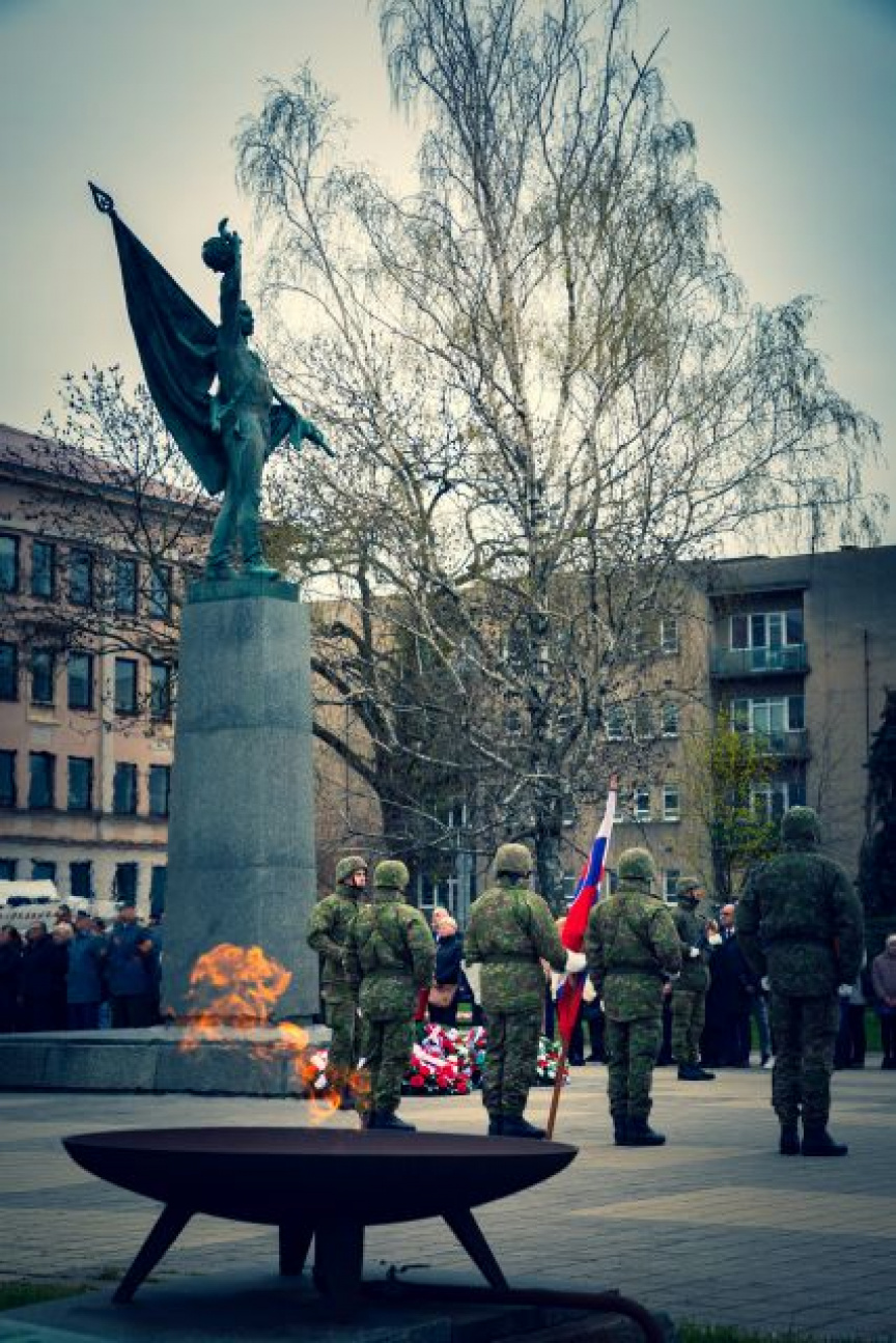 Kvety a vence k Pamätníku víťazstva pred budovou Okresného úradu v Nitre položili príslušníci 11. brigády vzdušných síl Nitra (11. bVzS NR), spoločne so zástupcami Nitrianskeho samosprávneho kraja, Okresného úradu v Nitre, primátorom mesta Nitra, ďalšími príslušníkmi Ozbrojených síl Slovenskej republiky, Slovenským zväzom protifašistických bojovníkov, delegáciami a klubmi vojenských dôchodcov, zástupcami Domu Matice slovenskej a všetkými ostatnými zúčastnenými.