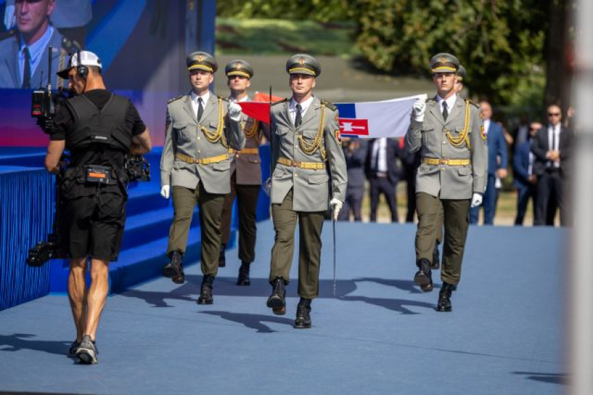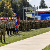 Po kladení vencov sa pozornosť upriamila na vztyčovanie štátnej vlajky SR príslušníkmi Čestnej stráže OS SR. Popoludňajšia časť podujatia patrila slávnostnej vojenskej prísahe.