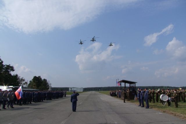 Nástup spestrili preletom vrtuľníkovej jednotky príslušníci leteckej základne Prešov. Počas slávnostného nástupu generalita ocenila príslušníkov dopravného leteckého krídla Kuchyňa, ktorí pracovali pre útvar už viac ako 15 rokov. Po slávnostnom nástupe odovzdal súčasný Veliteľ útvaru podplukovník Igor Brandabura pamätné obrazy bývalým veliteľom. Na obrazoch boli vyobrazené znaky všetkých útvarov, ktoré za viac ako 80 ročnú históriu pôsobili na pôde letiska.