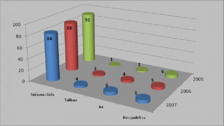 Myslí si to 54% obyvateľov Afganistanu. 24% Afgancov je opačného názoru a 15% sa nevedelo rozhodnúť (zvyšných 7 % sa nevyjadrilo).Toto je sumár odpovedí na prvú z 35 otázok prieskumu verejnej mienky, ktorý na skupine 1377 respondentov vykonala súkromná konzultačná firma Charney Research v období od 28. 10. do 17. 11. 2007. Prieskum si objednali televízne spoločnosti BBC World, ABC News a ARD. Popri aktuálnych výsledkoch je štatistika prieskumu obohatená o výsledky rovnakého prieskumu vykonaného v rokoch 2004 až 2006, čo umožňuje sledovať medziročný vývoj trendu nálad afganského obyvateľstva. V niektorých prípadoch je uvedené aj zaujímavé porovnanie s výsledkami obdobného prieskumu verejnej mienky realizovaného v Iraku. Násilie, Taliban a slabá ekonomika spojená s chudobou sú najväčšími problémami, ktorým podľa výsledkov prieskumu Afganistan v týchto dňoch čelí (graf č. 1). Iba 8 % respondentov si myslí, že najväčším problémom ich krajiny je korupcia, 3 percentá respondentov považujú za najväčší problém centrálnu vládu a spravovanie krajiny. Za najväčšie priority krajiny považujú respondenti zníženie násilia a kriminality (28%), tvorbu pracovných príležitostí (27%) a zlepšenie miestnej infraštruktúry, teda ciest, dodávok vody a elektriny (17%). Iba 4% respondentov si želá návrat Talibanu k moci, naproti tomu až 84% opýtaných uprednostňuje súčasnú vládu (graf č. 2). Kto predstavuje najväčšie nebezpečenstvo pre Afganistan? Väčšina opýtaných (52%) si myslí, že je to Taliban, ďalej nasleduje drogová kriminalita (23%) a USA (10%). Na silný vplyv korupcie na celkovú situáciu v Afganistane poukazujú reakcie respondentov na výzvu, aby zo zoznamu organizácií vybrali tie, ktoré si od nich vyžiadali úplatok zámenou za poskytnutie ochrany. Na čele pomyselného rebríčka sa s 27%, resp. 25% umiestnila Afganská národná polícia spoločne s provinčnými vládami (graf č. 3). Vnímanie medzinárodných síl v Afganistane bolo predmetom viacerých otázok prieskumu. Až 67% opýtaných hodnotí pôsobenie zahraničných vojakov ako veľmi dobré alebo dobré (graf č. 4), pričom ako hlavné dôvody uviedli poskytovanie bezpečnosti (36%), boj proti Talibanu (28%), humanitárnu pomoc (14%) a podpora ekonomického rozvoja regiónov (10%). Z tých, ktorí ohodnotili činnosť medzinárodných síl ako zlú až veľmi zlú sa väčšina (39%) rozhodla kvôli civilným obetiam a domovým prehliadkam, ktoré narúšajú súkromie obyvateľov (15%). Iba pre 3% opýtaných bol dôvodom negatívneho postoja boj medzinárodných síl proti Talibanu. O tom, že miestni obyvatelia vidia zatiaľ záruku bezpečnosti predovšetkým v prítomnosti medzinárodných síl svedčí, že až 43% opýtaných zastáva názor, že medzinárodné sily by mali opustiť Afganistan až vtedy, keď bude obnovená celková bezpečnosť v krajine a to napriek tomu, že 74% opýtaných považuje pozíciu centrálnej vlády prezidenta KARZAIA za veľmi silnú až silnú a zároveň 71% opýtaných zastáva názor, že Taliban nemá žiadny zásadný vplyv v krajine.