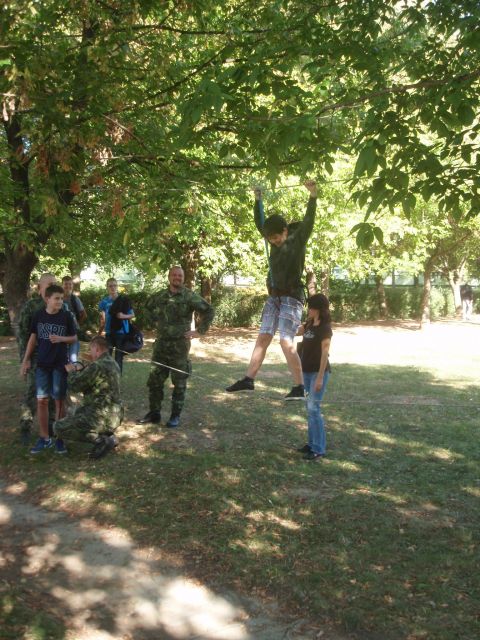 V ďalšej časti sa už deti rozprchli na pripravené pracoviská z rôznych oblastí, potrebných na prežitie v prírode. Ako si založiť oheň bez zápaliek, alebo ako získať pitnú vodu z neznámeho zdroja, či ako si urobiť prístrešok pred dažďom, ukázali deťom skusení prieskumáci na nejednom z pracovísk. Sebaobrana a zlaňovacie techniky boli pre deti neodolateľným lákadlom číslo dva. Celé skupinky deti, ale aj dospelých pozorne sledovali inštruktora sebaobrany a opakovali po ňom predvádzané hmaty. Ako podať prvú pomoc v prírode s použiťím prírodných materiálov predviedli žiakom zdravotníci práporu logistickej podpory. Deti si mohli vyskúšať podať prvú pomoc figuríne, alebo navzajom. Žiaci si ďalej mohli vyskúšať aj rádiovú komunikáciu vojenskými vysielačkami rôznych typov, ktorú im najprv predviedli vojaci roty podpory velenia prešovskej brigády.
