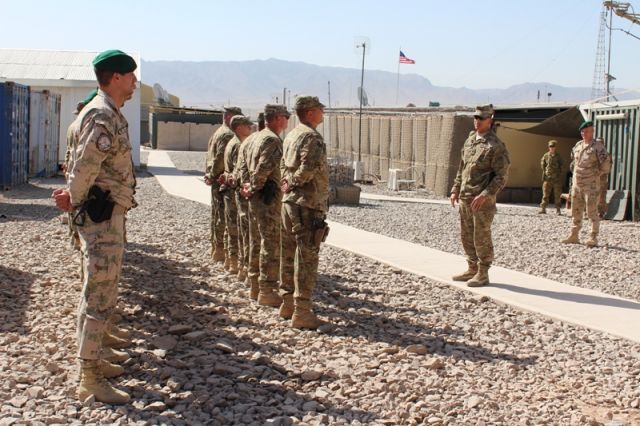 Pred odchodom sa v priestore pôsobenia konala rozlúčková ceremónia na ktorej veliteľ amerických síl v provincii Uruzgan plukovník Douglas C. Cardinale ocenil odchádzajúcich príslušníkov Národnej gardy vyznamenania za pôsobenie v operácii. Veliteľ udelil americkým vojakom dve Bronzové hviezy a tri medaily - Army commendation medal. Zároveň všetkých dekoroval odznakom Za pôsobenie v bojovej operácii.
