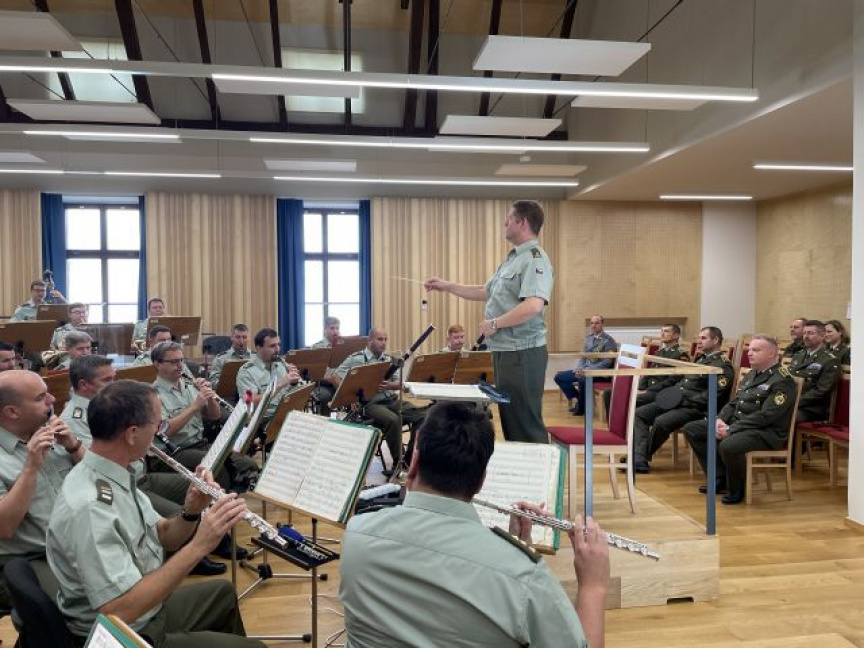 Ďalším bodom programu bola prezentácia o Vojenskej hudbe Olomouc, ktorá sídli v meste Olomouc. Tu si delegácia prezrela priestory vojenskej hudby a krátkou prezentáciou o ich hudbe priblížili prednášajúci chod a výcvik jednotky. Velitelia hudieb si vymenili svoje skúsenosti a poznatky, ktoré v budúcnosti môžu aplikovať aj u svojich vojenských hudieb. Nástrojové obsadenie orchestra a poznanie vzájomnej problematiky vo vojenských hudbách môžu pomôcť v budúcnosti k zlepšeniu chodu vojenských hudieb. Na programe bolo aj stretnutie so zástupcom veliteľa Pozemných síl AČR brig. generálom Pavlom Kolářom a príslušníkom Pozemných sil AČR plukovníkom Martinom Krumniklom, ktorý sa vo svojom príspevku zaoberal vyslaním kontingentu na Slovensko, rotačnými cyklami alebo modelom a koncepciou prezbrojenia AČR.