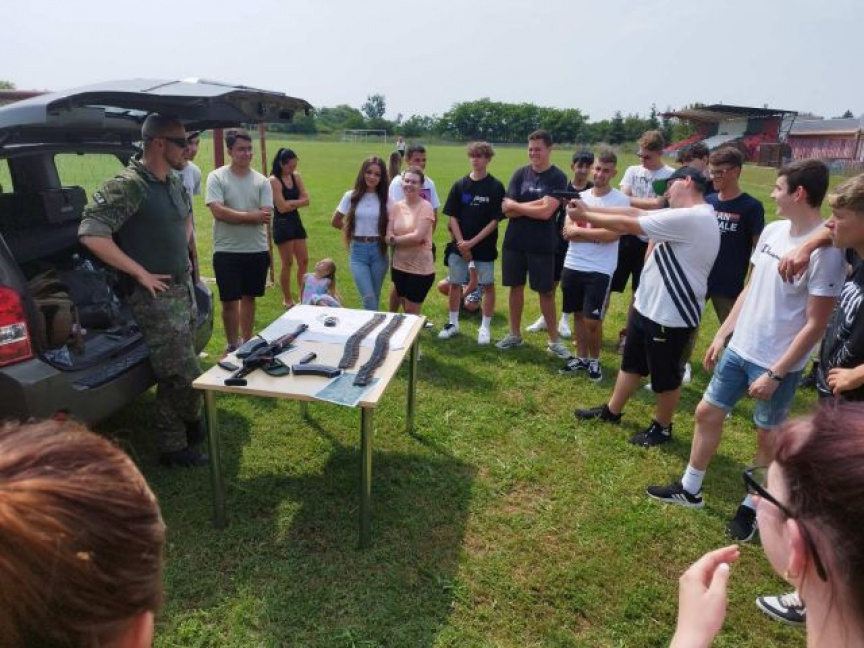 Určení profesionálni vojaci od 14.tankového práporu Trebišov si pripravili pre študentov program brannej prípravy na piatich pracoviskách s pútavými praktickými ukážkami a hlavne nácvikmi.