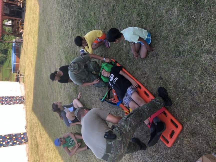 Úvod tejto aktivity patril tvorbe znakov a pokrikov jednotlivých súťažných tímov, ktoré pozostávali z detí a ich vychovávateľov. Následne sa skupiny detí presunuli do areálu chatového komplexu, kde na nich čakali statické ukážky techniky, zbraní a výstroje, maľovanie na tvár maskovacími farbami, ukážka zdravotníckej prípravy, či topografickej orientácie a práce s mapou a buzolou. Nechýbala ani dynamická ukážka sebaobrany príslušníkov roty podpory velenia, počas ktorej boli deťom prevedené ukážky úderov, kopov a chvatov, ako aj techniky používané pri obrane proti použitiu noža, strelných zbraní a poľnej lopatky. Najväčším zážitkom pre deti bola strelecká súťaž zo vzduchovky a pripravená prekážková dráha, na ktorej si mohli jednotlivé tímy zmerať sily a súťažiť medzi sebou.