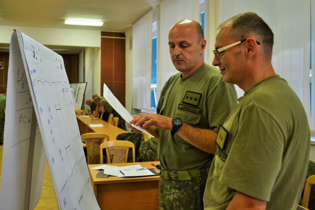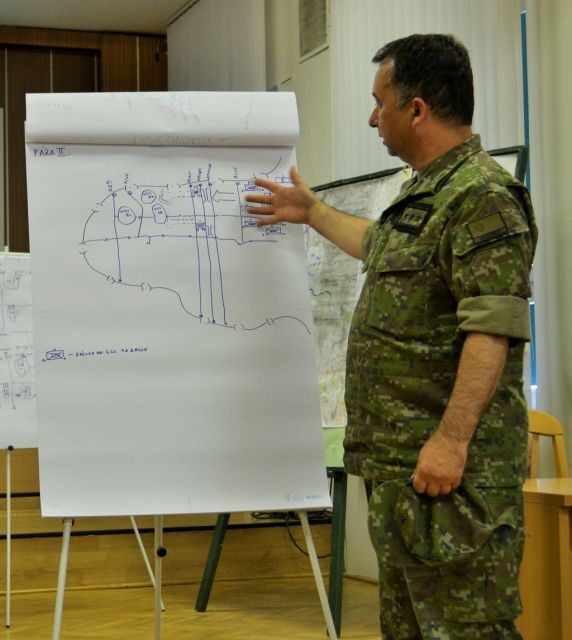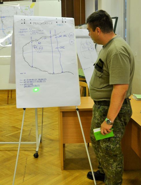 V trvaní šiestich výcvikových hodín boli v úvode zamestnania cvičiaci, za riadenia náčelníka štábu brigády podplukovníka Ľubomíra Podhorca, preskúšaní zo základných znalostí doktrín plánovacieho procesu brigády.