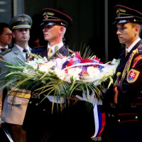 Dôstojnú spomienku počas celonárodných osláv Slovenského národného povstania zabezpečili položením venca v mene prezidenta SR príslušníci Čestnej stráže prezidenta SR.