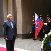 Česká hlava štátu pricestovala na oficiálnu návštevu Slovenskej republiky v pondelok v doobedňajších hodinách. Na prednom nádvorí Prezidentského paláca ho spolu s nastúpenými príslušníkmi čestnej stráže privítal náš najvyšší predstaviteľ.