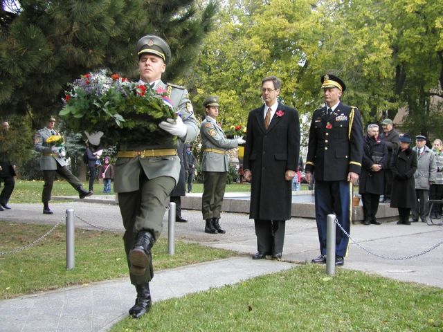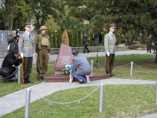Spomienke na vojnových veteránov (Red Popies Day) bol venovaný pietny akt kladenia vencov pri Pamätníku príslušníkom západného odboja na Šafárikovom námestí v Bratislave. V nedeľu, 11. novembra, za účasti náčelníka Generálneho štábu OS SR generálporučíka Peter Vojteka, mnohých ambasádorov, vojenských pridelencov, predstaviteľov štátnej a verejne správy a samosprávy a pravdaže organizácií vojnových veteránov vykonali jednotky Čestnej stráže OS SR a Vojenská hudba OS SR Bratislava vojenské pocty a akt kladenia vencov.