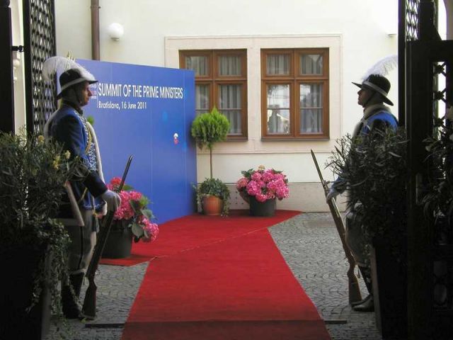 Čestná stráž OS SR Bratislava vzdala vojenské pocty – špaliere, pri príležitosti konania Summitu predsedov vlád krajín Višegrádskej štvorky v Miestodržiteľskom paláci v Bratislave.