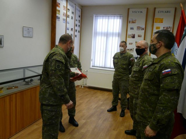 Pri dodržaní všetkých platných opatrení proti šíreniu COVID-19, si profesionálni vojaci preberali z rúk veliteľa práporu podplukovníka Jána Farkaša udelené čestné odznaky.