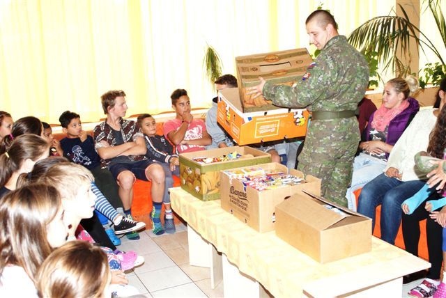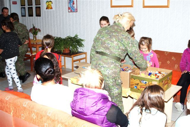 Po dohode so zástupkyňou riaditeľa detského domova v Necpaloch pani Roháčikovou sa uskutočnilo odovzdanie zbierky sladkostí deťom v detskom domove, ale aj tým deťom, ktoré sú umiestnené v starostlivosti v profesionálnych rodinách. Deti sa stretnutiu s vojakmi veľmi potešili, ako aj prineseným sladkostiam, ktoré im vojaci počas stretnutia osobne odovzdávali.
