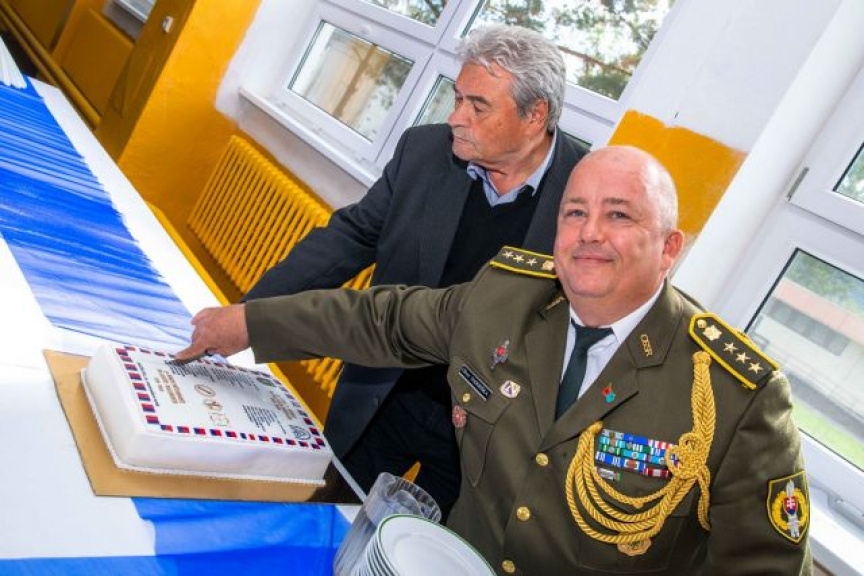 Slávnostný obed v jedálni útvaru spestril svojím vystúpením folklórny súbor Haviar, ktorý zaradil pri tejto príležitosti do svojho repertoáru aj špeciálnu skladbu o vojenských chemikoch zostavenú bývalým náčelníkom chemického vojska okruhu v Tábore Pavlom MARCINKOM. Čerešničkou na záver príjemného slávnostného dňa bolo spoločné krájanie chemickej torty bývalým náčelníkom 2. radiačného strediska Dušanom ŠALKOVIČOM s Oliverom TODERIŠKOM, ktorá všetkým chutila a čoskoro po nej zostala už len fotografia do útvarovej kroniky.
