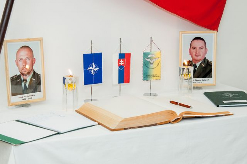 Na pôde 5. pluku špeciálneho určenia v Žiline sme zriadili kondolenčné miesto prístupné verejnosti, kde je možné vyjadriť sústrasť rodinám vojakov zápisom do knihy.