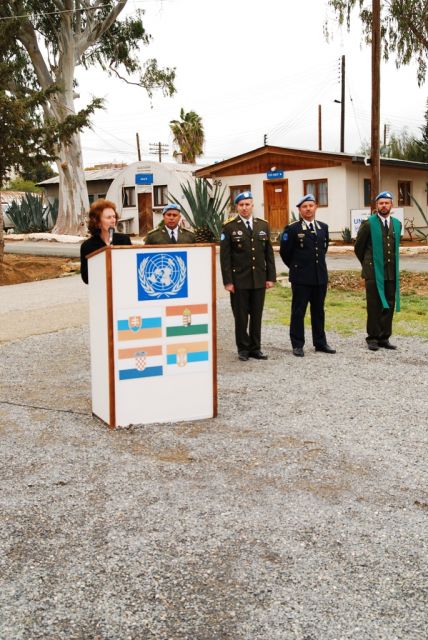 Na spoločnom nástupe rotujúceho personálu Sektoru 4 odzneli hymny všetkých štyroch zúčastnených krajín pôsobiacich v tomto mnohonárodnom sektore, kde slovenskí profesionáli dominujú nielen početne, ale aj vo veliteľských funkciách. Slová chvály a poďakovania na adresu vojakov za odvedenú prácu v misii odzneli z úst vzácnych hostí - slovenskej veľvyslankyne v Cyperskej republike J. E. Anny Tureničovej, maďarského veľvyslanca J. E. Csaba Lovró a srbského veľvyslanca J. E. Gyuricza Szabó. Pôsobenie vojakov ocenil aj veliteľ Sektoru 4 podplukovník Vladimír Voštiar a jeho maďarský zástupca podplukovník Imre Kovács.