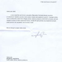 Ďakovný dopis od primátora mesta Žiar nad Hronom