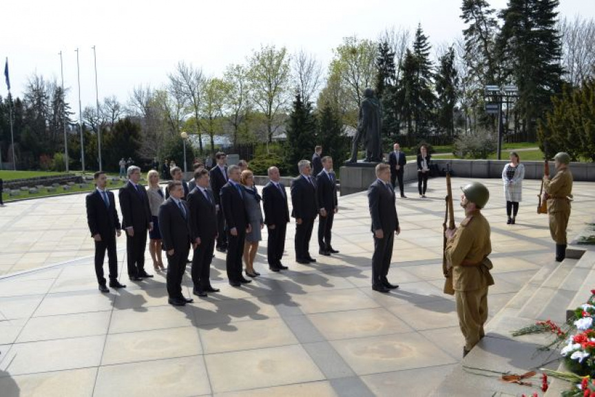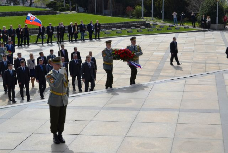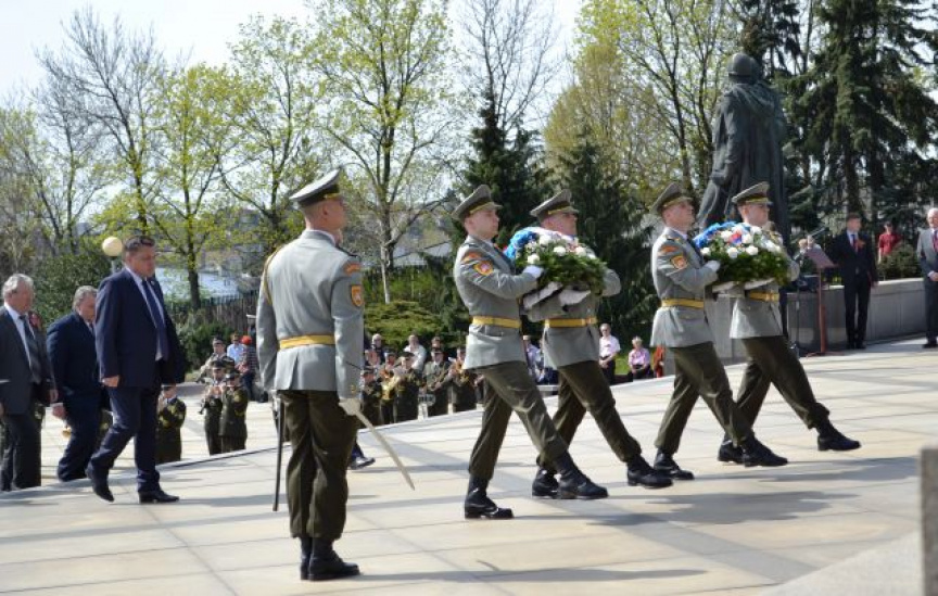 Za zvukov smútočného pochodu položili vence k pamätníku, ktorý sa týči nad našim hlavným mestom na počesť padlých vojakov Sovietskej armády, predseda vlády SR Róbert Fico, za rezort obrany minister obrany SR Peter Gajdoš a 2. zástupca náčelníka Generálneho štábu OS SR brigádny generál Jindřich Joch, niekoľkí členovia vlády a diplomati, veľvyslanec Ruskej federácie na Slovensku Alexej Leonidovič Fedotov, zástupcovia diplomatických zborov v SR, bratislavského samosprávneho kraja a hlavného mesta SR Bratislavy, Slovenského zväzu protifašistických bojovníkov a ostatní vzácni hostia.