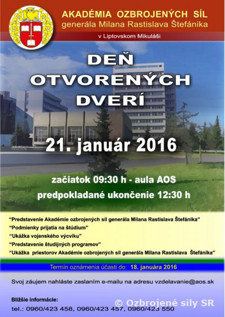 Akadémia Ozbrojených síl v Liptovskom Mikuláši organizuje 21. januára 2016 od 9.30 deň otvorených dverí.