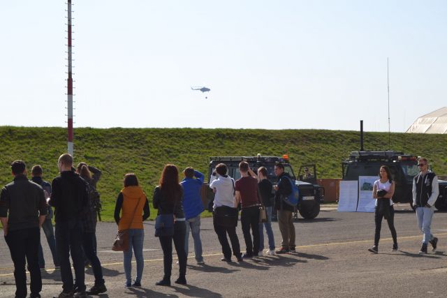 Po teoretickej časti sa študenti presunuli do priestorov letiska, kde mali možnosť vidieť dynamickú ukážku pilotáže nadzvukového stíhacieho lietadla MiG-29, ukážku spolupráce príslušníkov vojenskej hasičskej jednotky s posádkou vrtuľníka Mi-17, ktorí predviedli hasenie požiaru za pomoci bambi vaku.