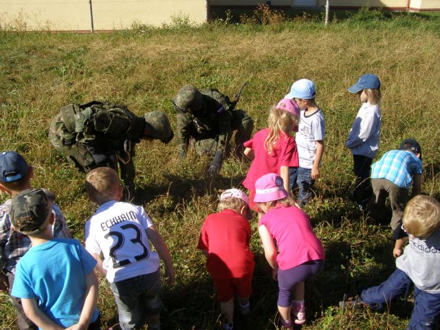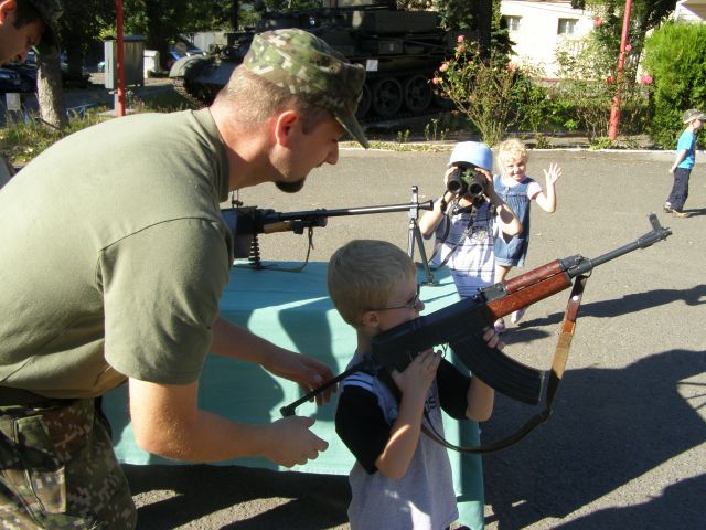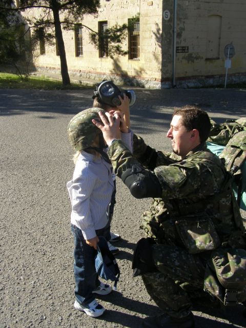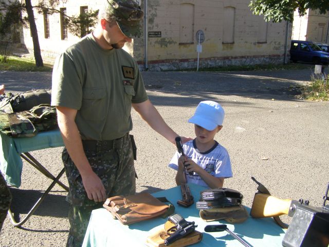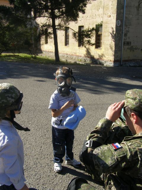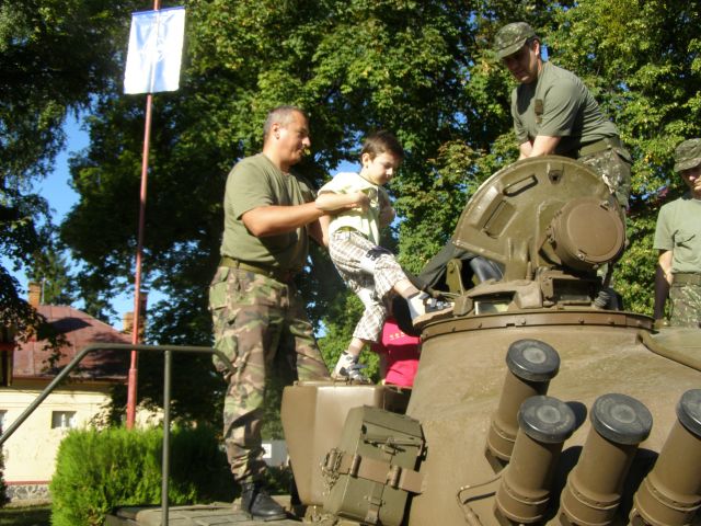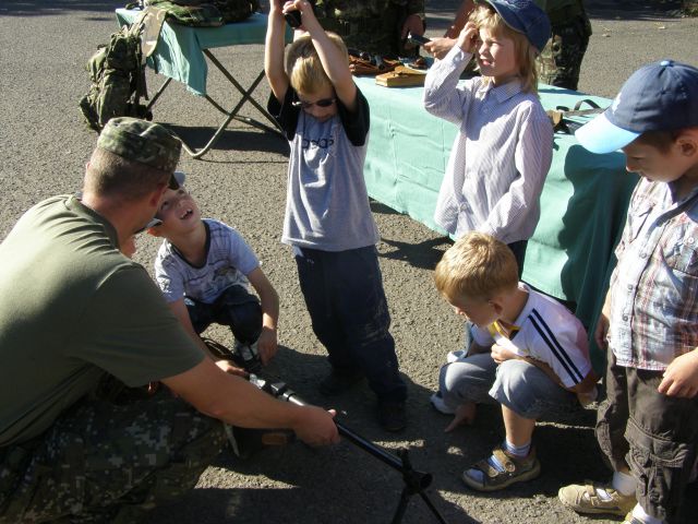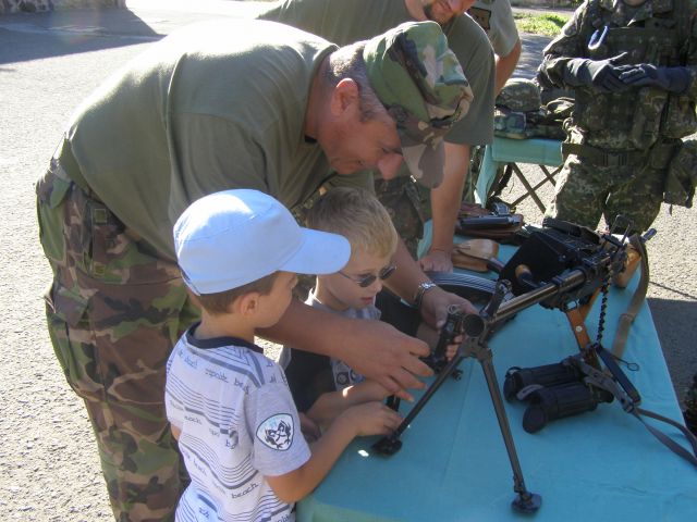 Skôr však kým sa ich oči rozžiarili a začuli sme smiech z mnohých očí vyšli slzy. Nevedeli totiž čo na nich čaká. Po chvíli sa však ustráchane deti zmenili na nepoznanie. Využili možnosť a hneď vbehli do T 72. Prví odvážlivci po preskúmaní prvého vozidla vbehli s pomocou a pod dohľadom PrV z OR do AV 15. UT 72 dlho stála nepovšimnutá, ale nakoniec aj jej útroby preskúmali ruky a oči malých šibalov. Malí, možno budúci vojaci, si mohli vyskúšať rozobrať a zložiť pištoľu, signálnu pištoľu, alebo dokonca sa popasovať so samopalom či guľometom. Vziať si na ramená ťarchu moduláru nenabralo ani jedno dieťa. Odvahu však preukázali pri ukážke cvičenia a streľby zo Sa vz. 58. Po odstrieľani sa s chuťou pustili do hľadania prázdnych nábojníc.