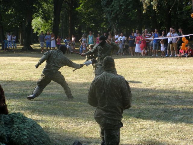 Nechýbala ani dynamická ukážka, kde si príslušníci 21.zmpr pod vedením poručíka Romana Markoviča pripravili a prezentovali techniku prepadnutia vozidla a taktiež rôzne techniky boja z blízka.