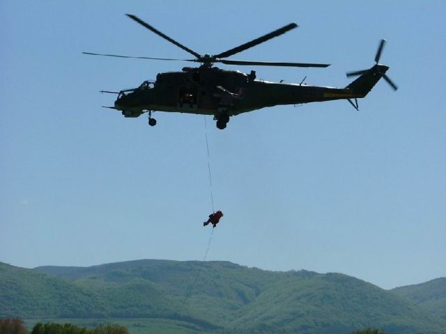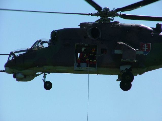 Veliteľ základne plukovník Miroslav Korba na vrtuľníku Mi-24 v letovej ukážke predviedol v spolupráci s hasičmi od leteckého modulu východ OR HaZZ Prešov evakuáciu postihnutej osoby. Na vrtuľníku Mi-17 predviedli prešovskí piloti, rovnako spolu s hasičmi, plnenie a následne hasenie požiaru za použitia „BAMBI“ vaku. Tieto efektné letové ukážky všetkým zúčastneným a tiež zástupcom médií nepochybne potvrdili úlohu, využitie a význam vrtuľníkov oboch typových označení nielen v Ozbrojených silách, ale aj v civilnom sektore, kedy zvuk motorov vrtuľníka, môže byť jedinou nádejou v nešťastiach rôzneho druhu.