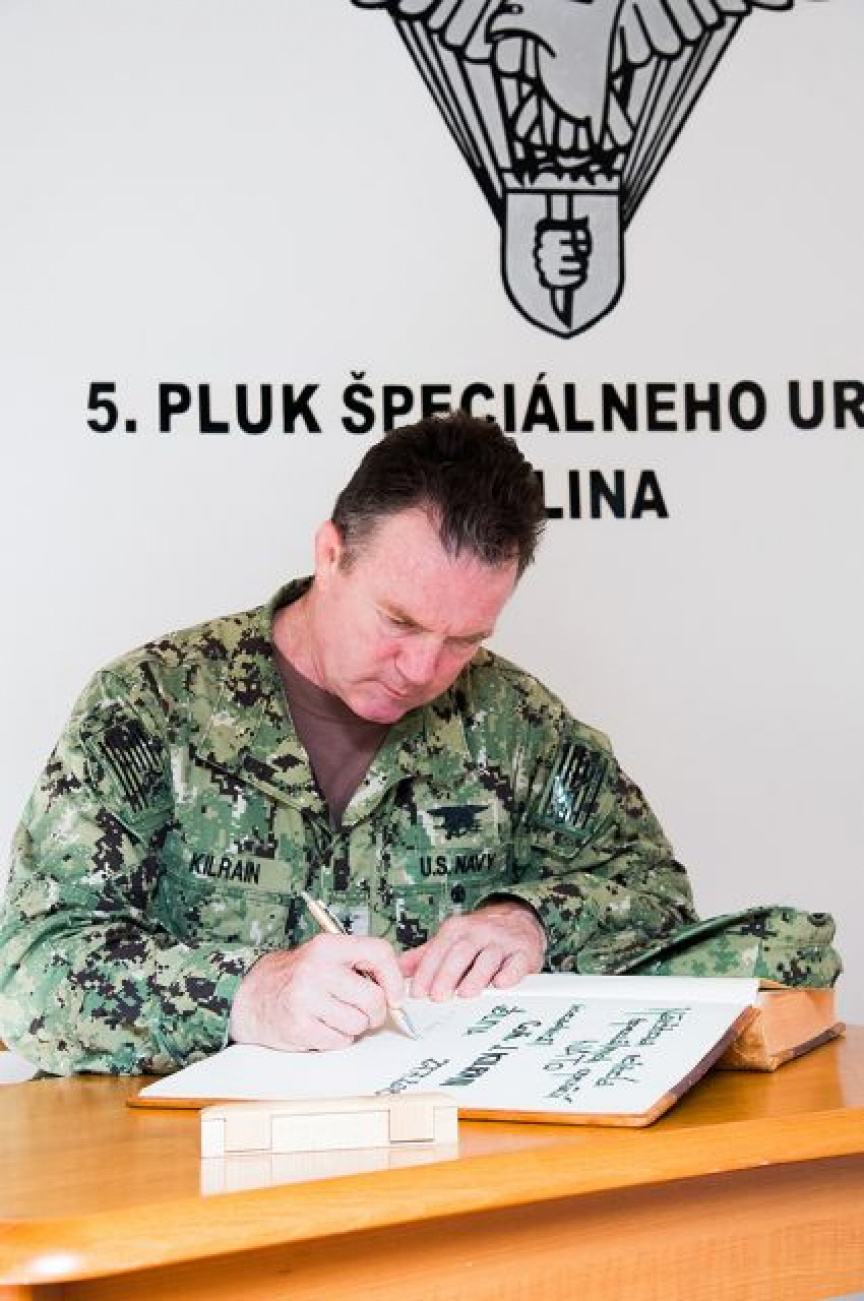 S aktuálnou situáciou v slovenských špeciálnych silách sa v piatok 27. júla 2018 prišiel do žilinského 5. pluku špeciálneho určenia zoznámiť viceadmirál Colin Kilrain, veliteľ špeciálnych operácií NATO.