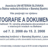 Putovnú výstavu "FOTOGRAFIE A DOKUMENTY" si tentoraz môžete prezrieť od 7. - 15. februára 2008 v priestoroch tátnej vedeckej knižnice na Lazovnej ulici č. 9 v Banskej Bystrici. Súbor fotografií a dokumentov Vás vtiahne do života profesionálnych vojakov v zahraničných mierových operáciách.