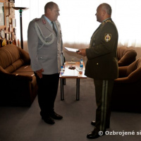 Náčelník Generálneho štábu ozbrojených síl SR generál Ľubomír Bulík dnes prijal pri príležitosti ukončenia pôsobenia pridelenca obrany Nemeckej spolkovej republiky (NSR) podplukovníka Herberta Schmida a jeho nového nástupcu podplukovníka Larsa Ukerwitza.