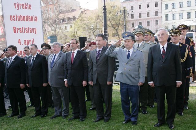 Veľvyslanec Ruskej federácie Pavel Kuznecov, ako aj primátor Bratislavy Milan Ftáčnik či predseda oblastného výboru Slovenského zväzu protifašistických bojovníkov Ladislav Jača vo svojich príhovoroch zdôraznili aj potrebu otvorene sa postaviť proti všetkým, ktorí by chceli spochybňovať výsledky vojny či skresľovať historické fakty. Skutočnosť, že práve armáda stavia svoje tradície na národnooslobodzovacích a protinacistických bojoch veľmi ocenil aj priamy účastník odboja Vladimír Turanec: „To, že je tu pri Pamätníku oslobodenia Bratislavy spolu s nami náčelník generálneho štábu, čestná stráž aj vojenská hudba je pre mňa veľkým povzbudením, že odkaz našich bojov budú mať v úcte i ďalšie generácie,“ zdôraznil takmer 89-ročný dnes už Bratislavčan, ktorý bojoval v SNP od prvého dňa až do 14. apríla 1945, kedy boli oslobodené jeho rodné Sučany.