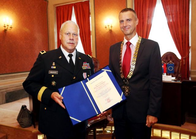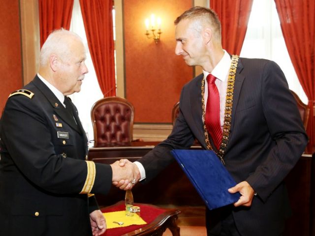 Po oficiálnom prijatí náčelníkom Generálneho štábu Ozbrojených síl SR generálporučíkom Petrom Vojtekom prijal 26. augusta v Bratislave amerického generála minister obrany SR Martin Glváč, s ktorým rokoval o ďalšej vojenskej spolupráci medzi Národnou gardou Indiana a našimi Ozbrojenými silami. Minister zároveň ocenil generálmajora Umbargera Pamätnou medailou. V popoludňajších hodinách sa Umbarger stretol aj s podpredsedom vlády SR a ministrom zahraničných vecí a európskych záležitostí Miroslavom Lajčákom. Témou ich rozhovorov bola aktuálna situácia v krízových oblastiach a participácia členských krajín NATO pri riešení konfliktov.