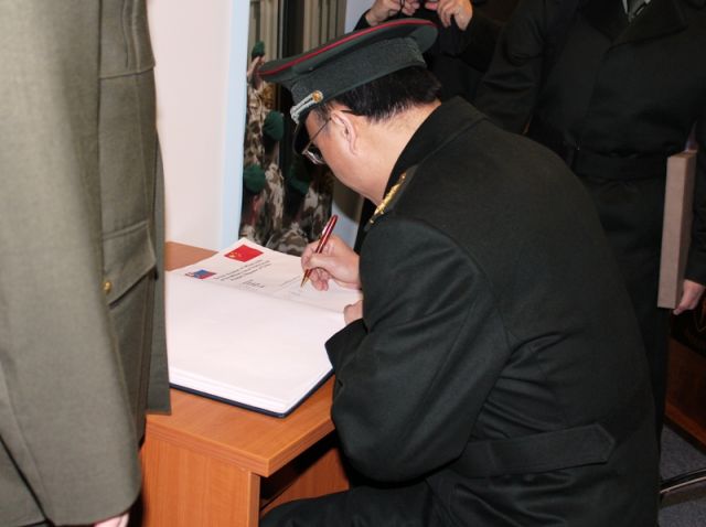 Skupinu čínskych dôstojníkov, zameranú na štúdium vojenských hodnôt na generálny štáb sprevádzal pridelenec obrany Čínskej ľudovej republiky v SR plukovník Wan Dong. Účelom trojdňovej návštevy čínskych dôstojníkov na Slovensku je stretnutie s príslušníkmi OS SR, ktorí sa venujú témam ako je výchova k vlastenectvu a posilňovanie vojenskej profesionality. Program čínskej delegácie pokračuje návštevou Vojenského obvodu Záhorie.