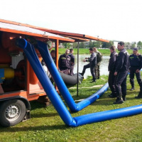 Dvadsať profesionálnych vojakov, pod vedením nadrotmajstra Daniela Cinkaniča, si precvičovalo činnosti súvisice so záchranou osôb a majetku počas povodní. Hasiči si vyskúšali odčerpávanie vody zo zatopených oblastí, kladenie norných stien, ktoré sa využívajú najmä pri ekologických haváriách na vodnej ploche na zachytávanie škodlivých látok. O svoje skúsenosti zo zásahov počas povodní v rôznych regiónoch Slovenska sa s našimi hasičmi podelil nadporučík Pavol Myšľan z humenskej brigády. Záver súčinnostného cvičenia patril už tradične výcviku s motorovým člnom, kedy si vodcovia malého plavidla precvičili odplávanie od brehu, manévrovanie s člnom na vodnom toku po prúde aj proti prúdu a pristátie.