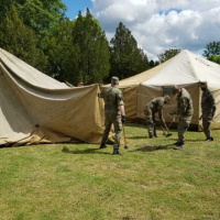 Pre potreby Mestského úradu v Nových Zámkoch 5. mája vyčlenil Prápor logistiky Hlohovec stavebno- ubytovací materiál. Celkovo boli mestu odovzdané dva komplety vojenských stanov, poľná umyvárka a 10 kusov poľných postelí.