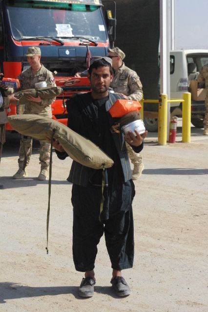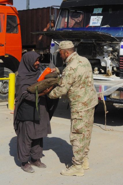 Humanitárna pomoc bola rozdávaná od 22. do 31. januára na dvoch miestach. Prvým z nich bolo miesto na podrobnú kontrolu civilných vozidiel, ktoré vstupujú do priestoru základne KAF. Nákladné vozidlá Afgancov po podrobnej prehliadke vykonanej psom na vyhľadávanie výbušnín a taktiež psom na vyhľadávanie omamných a psychotropných látok, sú potom prehľadané našimi príslušníkmi strážnej jednotky. Medzitým afganskí vodiči kamiónov absolvujú podrobnú osobnú prehliadku. Následne v zástupe ich privádza poverený vojak. Afganskí vodiči dostávajú pokyn, aby ešte nenastupovali do vozidiel. V ich tvárach je už vidno aj akúsi detskú radosť, keď sa k nim približuje s plnou náručou kaplán slovenského kontingentu, familiárne volaný ,,Padre“, aj za pomoci príslušníkov strážnej jednotky. Afganskí vodiči kamiónov sú plní radosti a vďaky za dary humanitárnej pomoci, ktoré si odnášajú. Po mnohých stretnutiach s našimi príslušníkmi Force protection, s ktorými sa stretávajú pri kontrolách na vstupe či výstupe zo základne, aj povedia ,,Ďakujem kamarát.“
