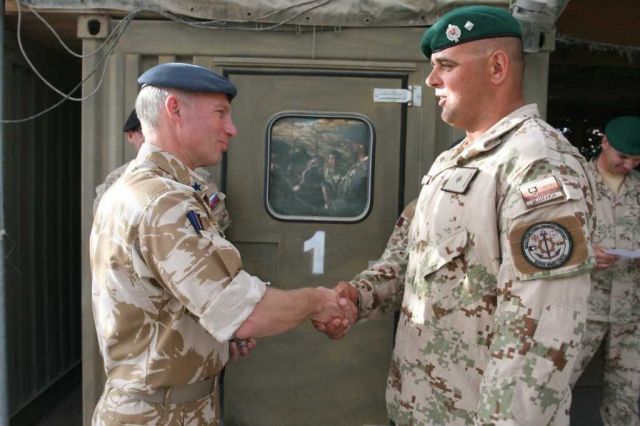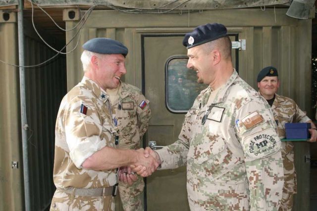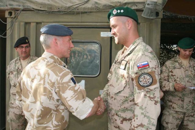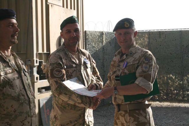Britský generál následne ocenil prácu slovenských vojakov pamätnou mincou veliteľa základne. Medzi ocenenými boli príslušníci multifunkčnej ženijnej roty: ženista vojak 2. stupňa Dominik Valášek, vodič – obsluha kolesového nakladača slobodník Marek Lacek a vodič- strojník desiatnik Daniel Krajňák. Zároveň generál Brecht ocenil aj prácu príslušníkov strážnej jednotky ECP-3, ochraňujúcej vstupný a výstupný bod najväčšej základne NATO na svete, vojenských policajtov: veliteľa strážneho družstva nadrotmajstra Jána Vozára a veliteľa strážnej jednotky kapitána Martina Marka.
