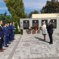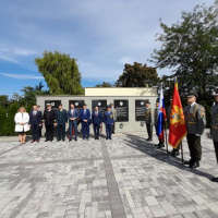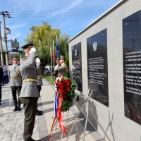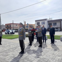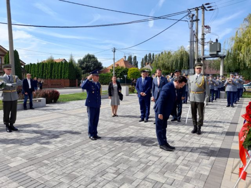 Program zahraničnej návštevy pokračoval vo Veľkom Mederi, kde v popoludňajších hodinách naše reprezentatívne súčasti zabezpečili pietny akt kladenia vencov k Pamätníku vojnových zajatcov I.svetovej vojny.
