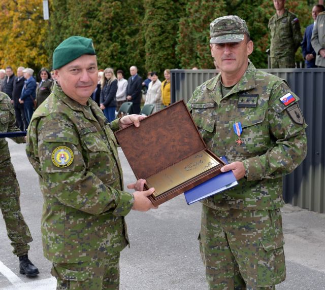 Po slávnostných príhovoroch nasledovala oficiálna rozlúčka s odchádzajúcim zástupcom veliteľa 1.mb plukovníkom Cvikom, ktorý naše vojenské rady opustí dňom 31. októbra 2022. Jeho prácu počas kariéry profesionálneho vojaka ocenil naviac svojou pamätnou plaketou náčelník GŠ OS SR a z rúk veliteľa prvej brigády si prevzal vecný dar.