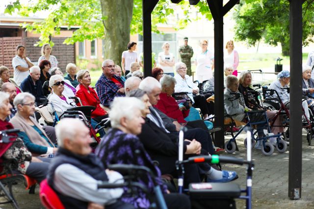 V utorok 30. mája zavítali vojenskí hudobníci po polroku opäť medzi seniorov v domove sociálnych služieb Senior Park Rohovce. Svojim vystúpením spríjemnili slnečné májové predpoludnie klientom domova zmesou melódií vážnej i populárnej hudby. Vrcholom predstavenia bola spoločná skladba „Zbohom ostávajte“ v podaní príslušníkov Vojenskej hudby OS SR a legendy slovenského folklóru pani Dariny Laščiakovej, tohto času klientky DSS. Koncert bravúrne odohralo dychové kvinteto v zložení nadrotmajster Marián Vlado, rotmajster František Miko, rotmajster Ernest Kollár, čatár Lukáš Golej a nadporučík Tomáš Obdržal.