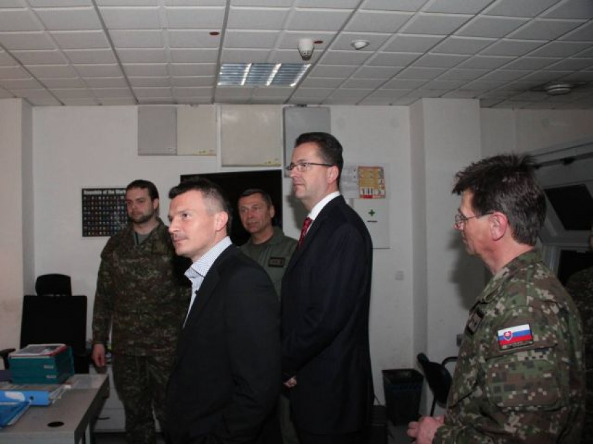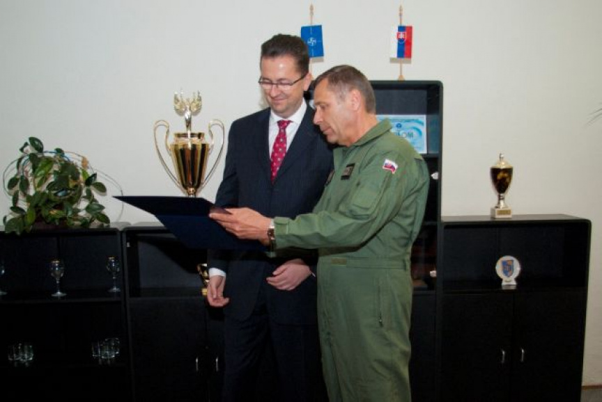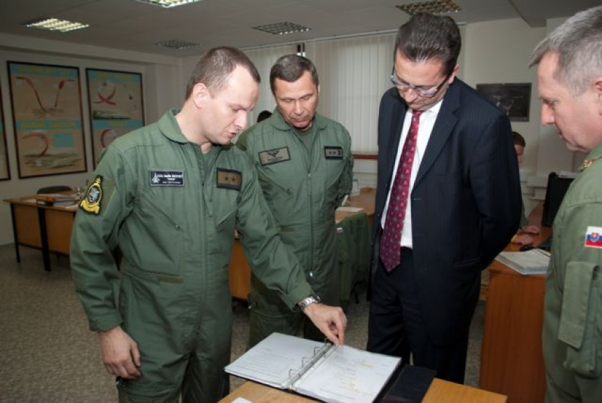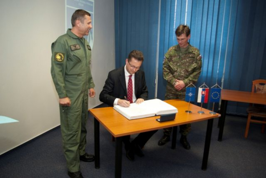 Program dnešnej návštevy pokračoval na leteckej základni Sliač, domovskej základni slovenského stíhacieho letectva. Veliteľ základne plukovník Vladimír Lisý predstavil hosťom históriu, poslanie a aktuálne úlohy útvaru. Veliteľ bojovej letky podplukovník Marián Bukovský a veliteľ výcvikovej letky podplukovník Roman Poláček informovali prítomných ministrov o spôsobe výcviku pilotov, ktorí po dosiahnutí potrebných spôsobilostí zabezpečujú systém NATINADS. Súčasťou programu bola aj prehliadka priestorov pohotovostného systému, odkiaľ v prípade narušenia vzdušného priestoru alebo nutnej pomoci civilnému lietadlu v núdzi, vzlieta dvojica pohotovostných stíhačov na lietadlách MiG-29.