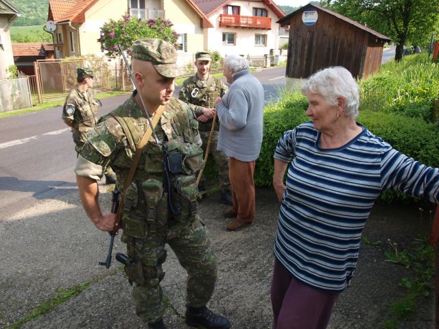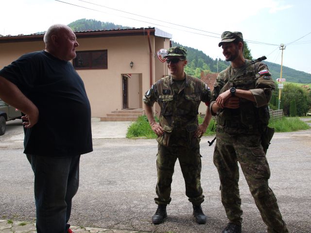 Civilno - vojenské hodnotenie obcí, pomoc civilnému obyvateľstvu alebo vykonávanie psychologických operácií v obciach Krpeľany a Podhradie precvičujú príslušníci jednotky CIMIC a PSYOPS Martin v rámci Komplexného spoločného výcviku Common Direction 2015.