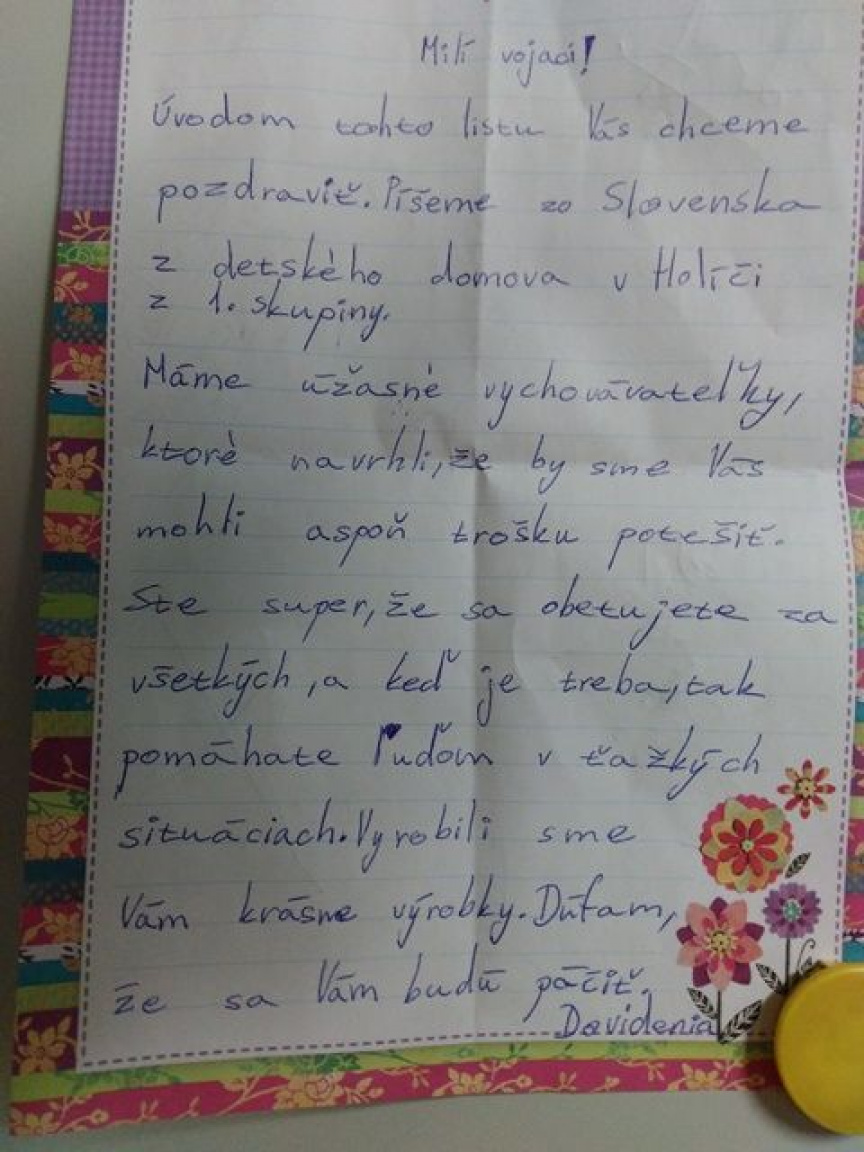 Posielanie balíkov vojakom do misie od občanov krajín z ktorých pochádzajú je v mnohých krajinách bežné, preto aj tento spontánny akt detí z detského domova v Holíči, je vyjadrením práce ich vychovávateliek, ktoré ich aj týmto spôsobom vedú k vlastenectvu a hrdosti.