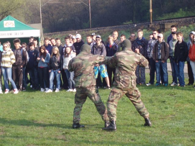 Aktivita sa konala v peknom prostredí na brehu rieky Hornád. Začínalo sa ráno o ôsmej úvodným slovom kpt. Ing. Mareka PAVLOVA. Razantnosť úvodu charakterizovala aj ukážka sebaobrany príslušníkov prieskumnej roty z Rožňavy. Celé dopoludnie sa nieslo v znamení nových poznatkov a skúseností. Študenti mali k dispozícií šesť stanovíšť s rôznou technikou a ukážkami. Boli to ukážky zbraní, kde bolo skladanie a rozoberanie samopalu. Dobrovoľníci si dokonca mohli vyskúšať aj streľbu zo samopalu. Určiť svetové strany bez kompasu, alebo azimut sa mohli naučiť na stanovišti č. 2. Ďalšou zaujímavou vecou bola umelá figurína, na ktorej sa dala vyskúšať technika masáže srdca s teoretickým vysvetlením ako postupovať pri poskytnutí prvej pomoci ranenému. Chemická časť bola aj kvôli rozsahu rozdelená na dve časti. V prvej sa študenti dozvedeli aké nebezpečenstvá hrozia pri chemickom útoku. Mohli si vyskúšať plynovú masku a návlek. V druhej časti im boli predvedené prístroje na meranie nebezpečných látok v ovzduší a voľnú kabínu ponúkalo aj špeciálne prieskumné transportné vozidlo BRMD – 2RCH. Poslednou zastávkou bola sebaobrana a možnosť naučiť sa niekoľko zaujímavých hmatov a chvatov sebaobrany.