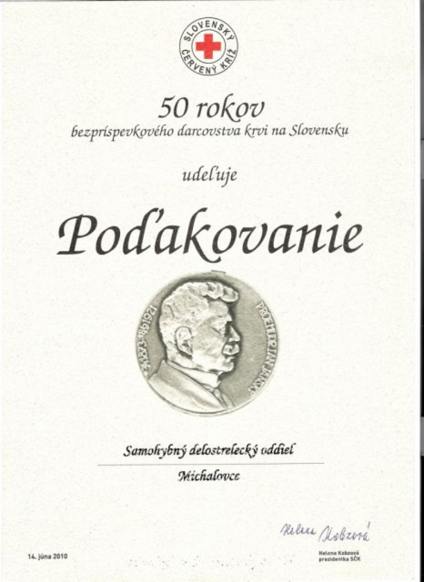 Dňa 16.6.2010 sa v priestoroch Samohybného delostreleckého oddielu v Michalovciach uskutočnila tradičná akcia - darovanie krvi pod názvom „Kvapka krvi“. Tohto podujatia sa zúčastnilo 58 profesionálnych vojakov- dobrovoľných bezpríspevkových darcov krvi. Pri tejto príležitosti Samohybný delostrelecký oddiel v Michalovciach dostal poďakovanie od Slovenského červeného kríža za významný prínos k dobrovoľnému darcovstvu krvi v regióne. Poďakovanie prevzal zástupca veliteľa shdo mjr. Ing. Pavol Barančík a náčelníčka obväziska nrtm. Andrea Guľková. Príslušníci oddielu si uvedomujú veľký význam a prínos dobrovoľného darcovstva krvi a preto budú v tejto ušľachtilej tradícii pokračovať.
