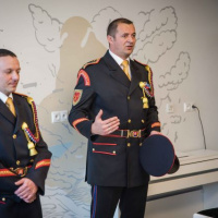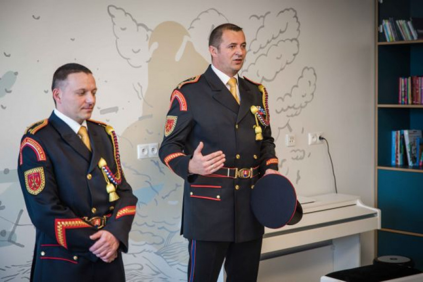 Na záver návštevy pripravili malí pacienti milé prekvapenie v podobe symbolického obdarovania príslušníkov útvaru ručne vyrábanými ,,kyticami vďaky".