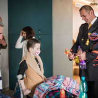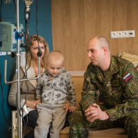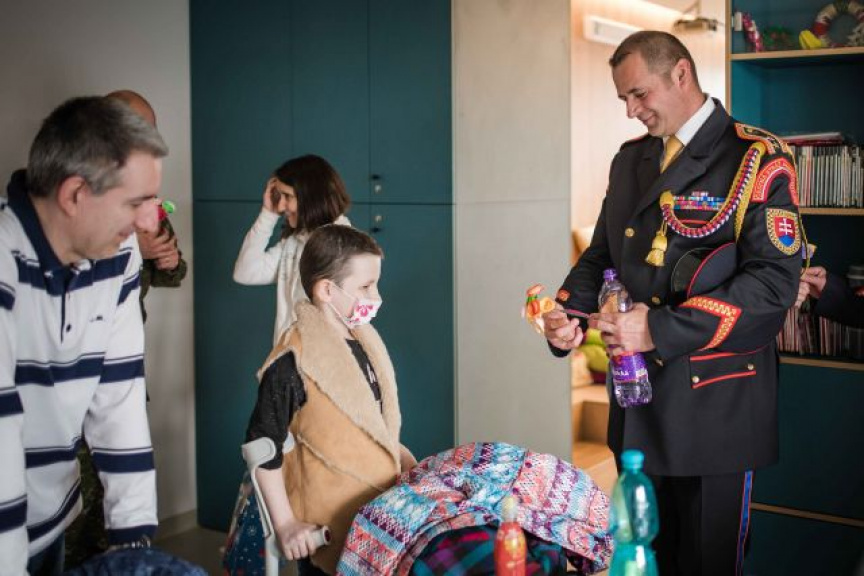 Po odovzdaní finančného a vecného daru nasledovalo stretnutie príslušníkov útvaru s detskými onkologickými pacientmi a ich rodičmi. Vojaci svojou prítomnosťou urobili deťom obrovskú radosť. Pre detských pacientov si pripravili ukážku výstroja, oboznámili ich s organizačnou štruktúrou a hlavnými úlohami útvaru.