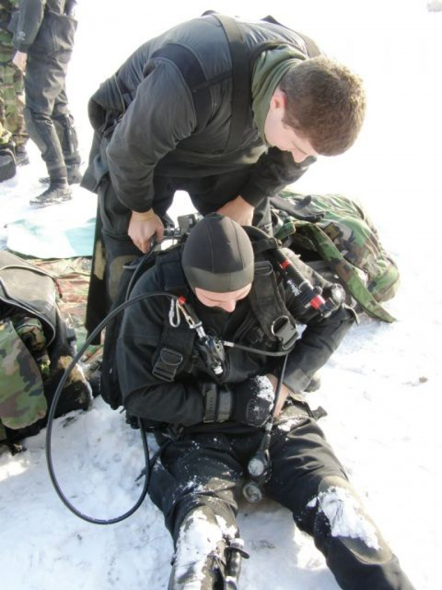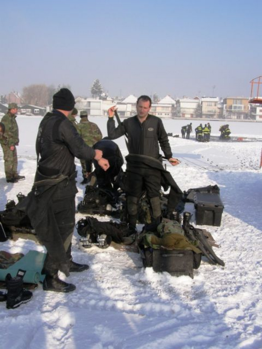 Prvou dvojicou bol minister vnútra SR Daniel Lipšic s hasičským inštruktorom potápania. Bez problémov sa zanorili a po preplávaní predpísaných vzdialeností sa vynorili v mieste vstupu do vody. Ľad mal hrúbku 12 cm, teplota vzduchu bola -5 °C, teplota vody 1°C a pokrývka snehu zabraňovala prechodu svetla pod ľad, čo ešte znižovalo viditeľnosť v relatívne zakalenej vode. Miestami bola viditeľnosť iba jeden meter. Vojaci roty podpory velenia, 5. ženijnej odtarasovacej roty a 6. ženijnej roty zvládli celú akciu na „výbornú“, za čo im patrí uznanie. Prišli s dobre pripraveným materiálom a profesionálnym prístupom.