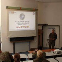 Prvá prednáška bola zameraná na mnohonárodnú brigádu pôsobiacu v Centre výcviku Lešt ako kľúčový prvok medzinárodnej spolupráce. Hlavný španielsky veliaci poddôstojník mnohonárodnej brigády štábny nadrotmajster Pablo San Agustín Vallaure predstavil komplexný obraz medzinárodnej vojenskej jednotky, ktorá symbolizuje silu a jednotu členských krajín NATO. Prednáška poskytla detailný náhľad do štruktúry mnohonárodnej brigády, jej strategických spôsobilostí, významu medzinárodnej vojenskej spolupráce a jej operačných schopností.