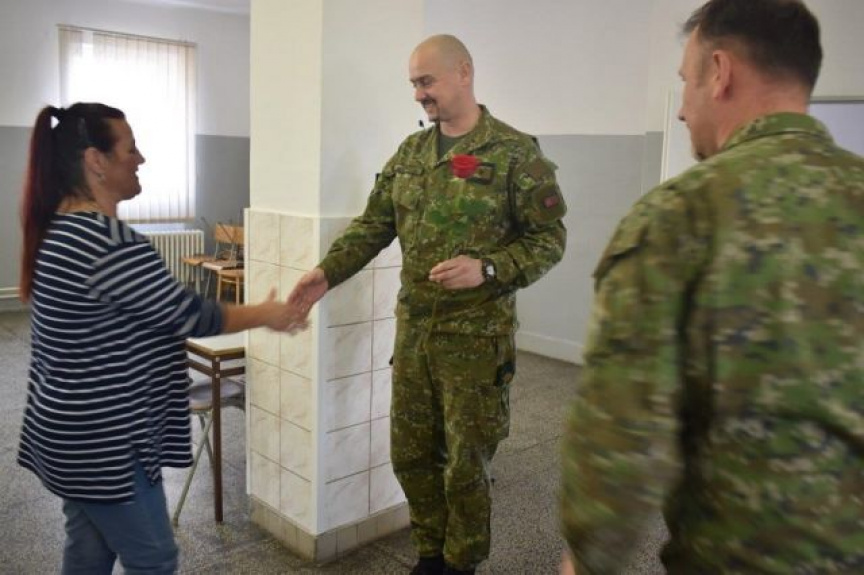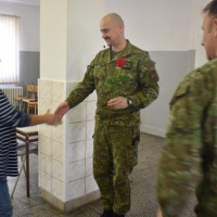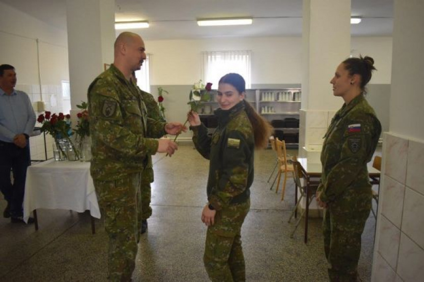 Veliteľ levického práporu podplukovník Miroslav Osif spolu z veliacim poddôstojníkom nadrotmajstrom Zoltánom Vargom sa pri tejto milej príležitosti stretol s príslušníčkami práporu.